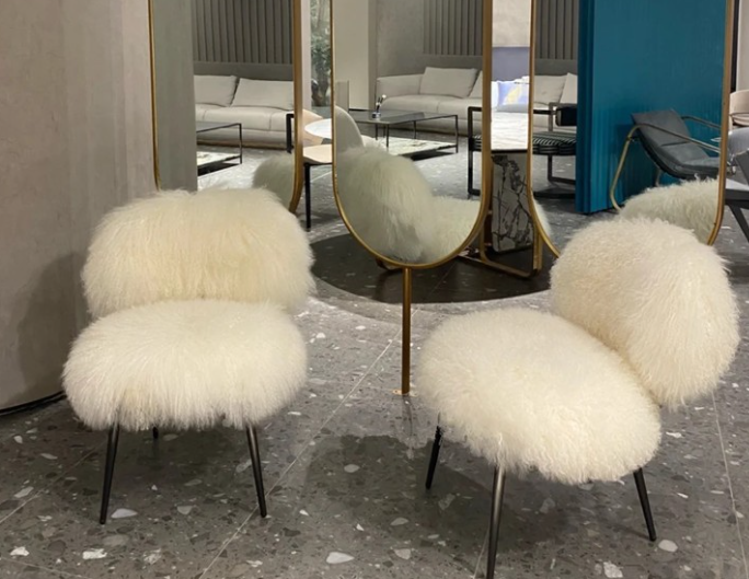 Contemporary Leisure Chair in Real Wool & Stainless Steel Black Titanium Feet. 60W x 65D x 71H cm Imported Product