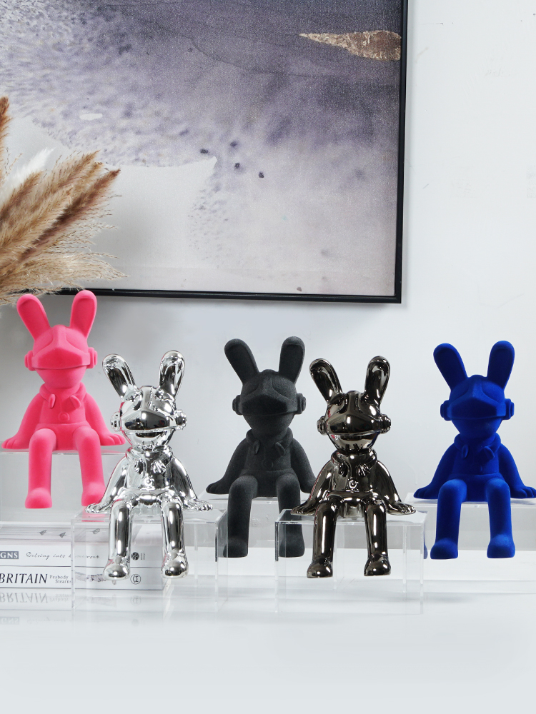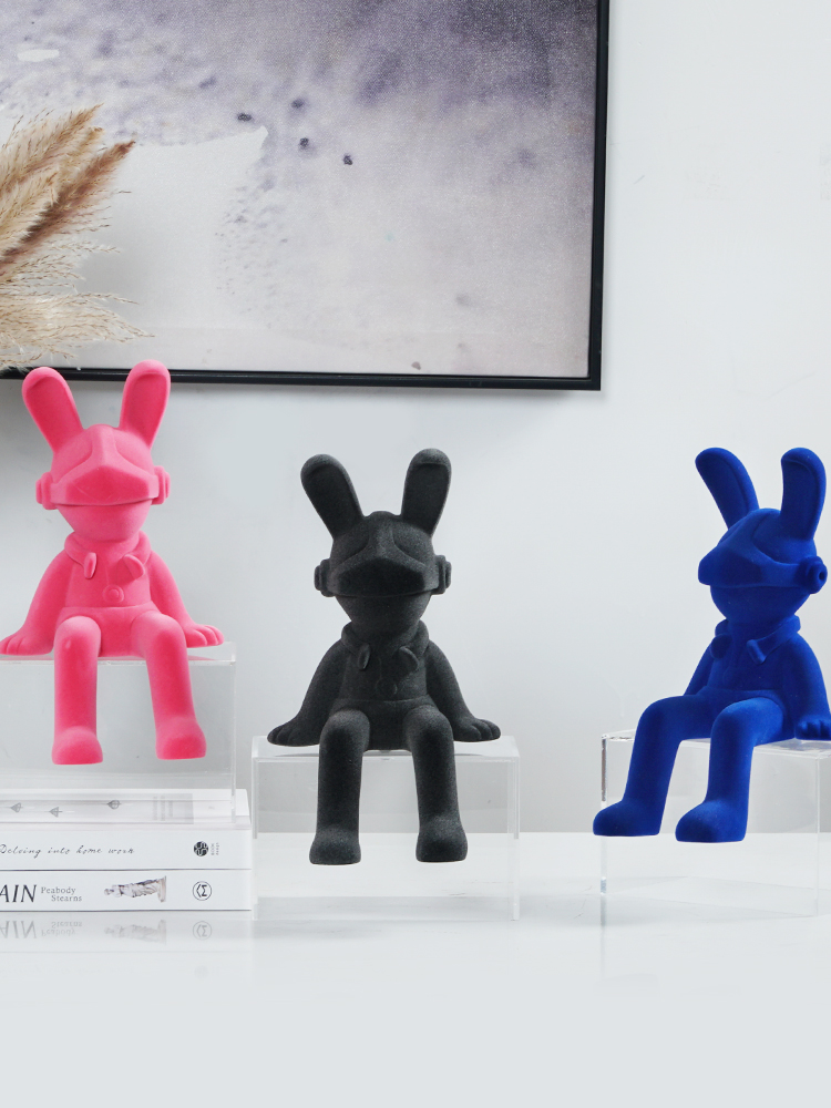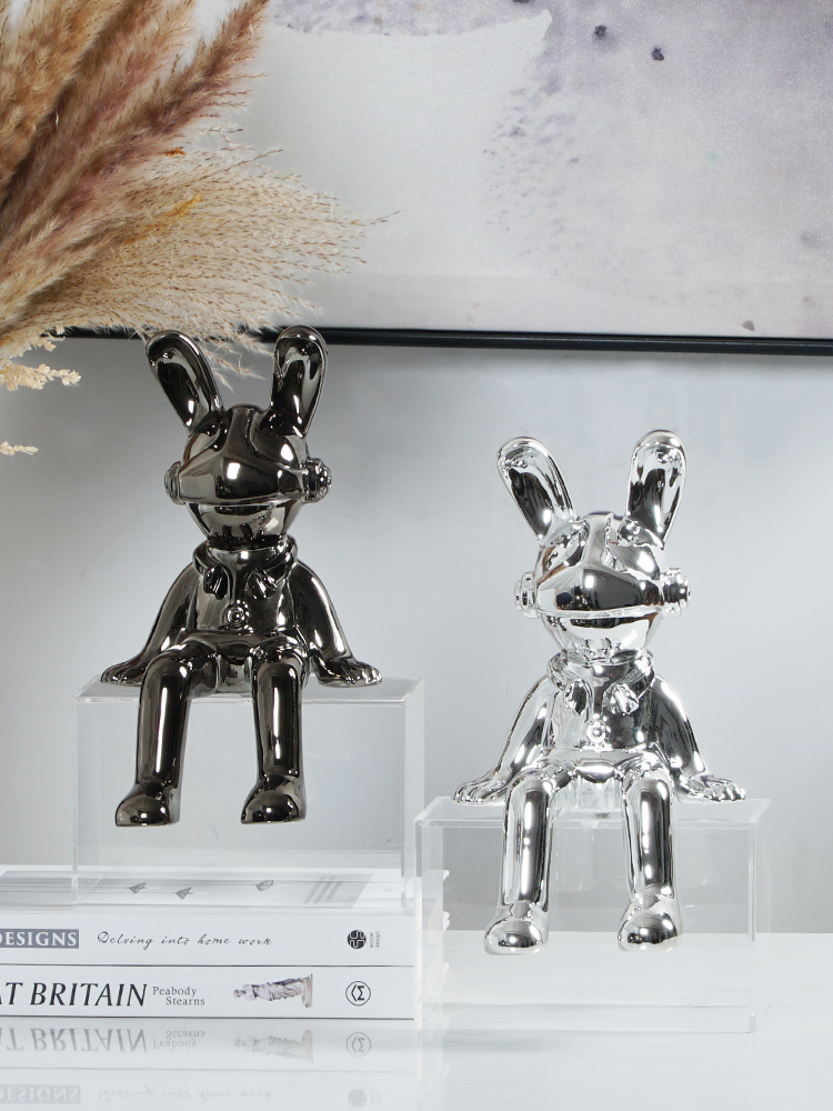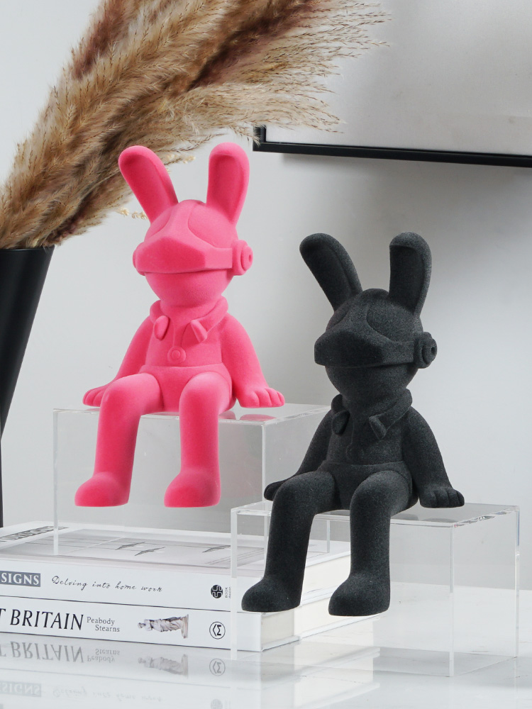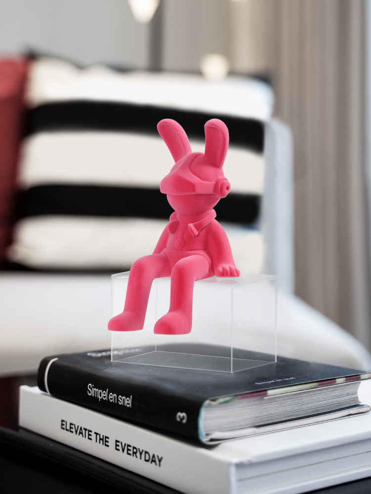 Modern, Abstract “Charcoal Astro Bunny The 2nd” Sculpture in Synthetic Resin. 16W x 17D x 28W cm
