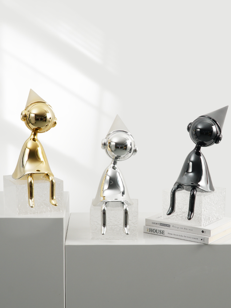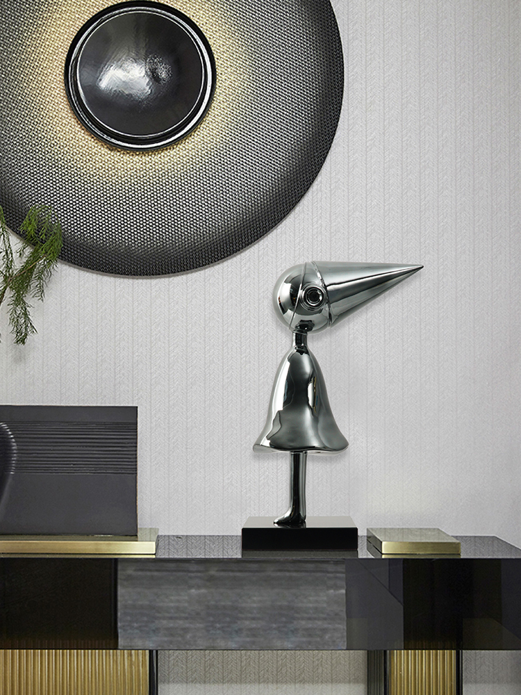 Modern, Abstract “Cappuccetto Rosso” Sculpture in Synthetic Resin with a Marble Foot Piece. 20W x 23D x 38H cm