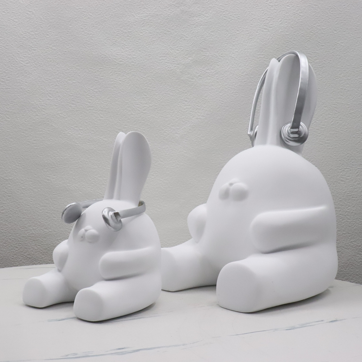 Modern, Abstract “DJ Rabbit” Sculpture in Synthetic Resin. 22W x 22D x 40H cm