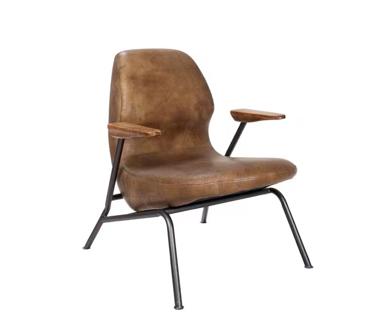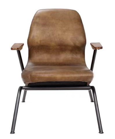 Vintage Accent Chair in Cow Leather and Plywood with an Industrial Frame