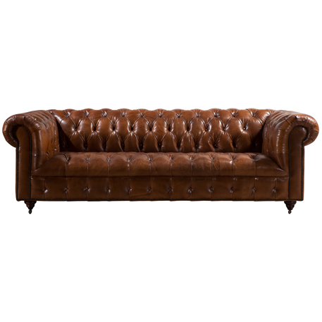 Vintage Chesterfield 3 Seater in Cow Leather with Castor Wheels Size: 240W x 98D x 78H cm