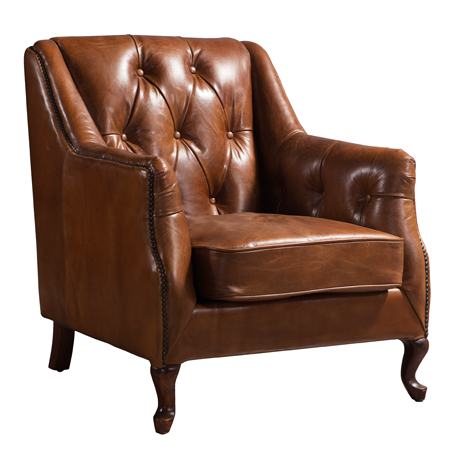 Vintage Chesterfield Leisure Chair in Cow Leather with Solid Wood Legs Size: 75W x 89D x 89H cm